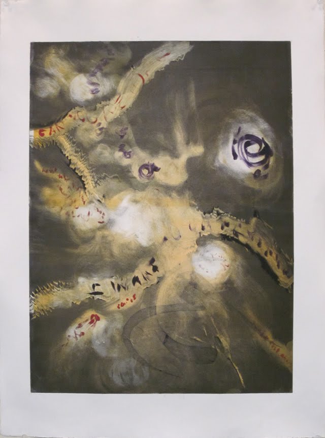 Spent today in the studio. I'm starting to feel pretty good about these prints. I have 11 prints that I consider finished, or almost finished. At some point I got to using a lot of black, red, and a mossy yellow. It seems to work.